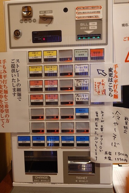 今日7/31は、特製中華そば(1,550円)+メンマ(170円)+海苔(100円)+手もみ平打麺変更(0円)で、