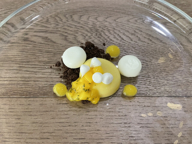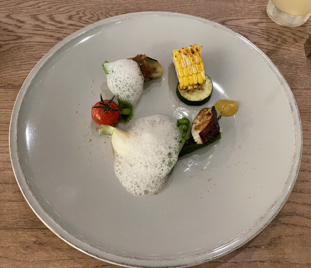シェフがわざわざテーブルまでご挨拶に来てくださいまして....「北海道を旅立つと伺いました。本日は北海道の食材をメインにご用意しています」と。