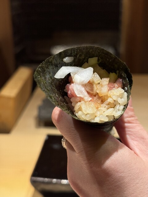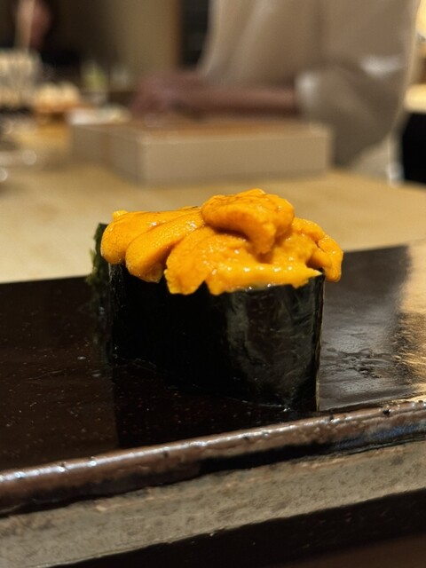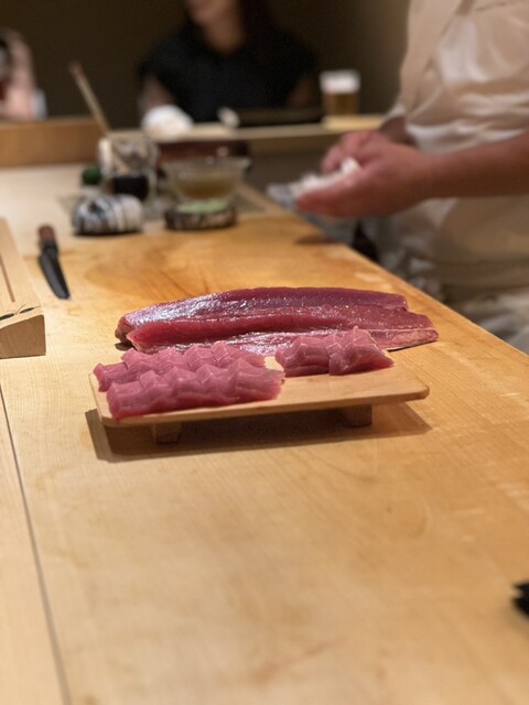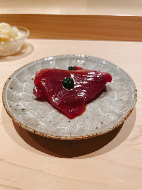 大間のマグロからスタートで最初から美味しい。テンション上がります。牡蠣もこんなに大きくてみずみずしか日本酒に合う!百合根のすり流しがかかった茶碗蒸しもとろとろで美味しい。小鉢のクリームチーズやあん肝と奈良漬も握りの合間にちびちびいただけて良い!