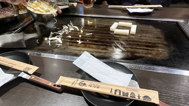 お好み焼きは、ミックスともちチーズで、2枚とも店員さんが目の前で焼いてくれるスタイル