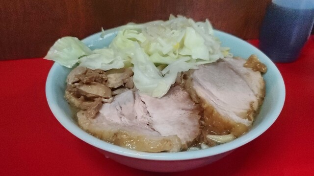 麺半分、野菜マシマシ、にんにくあり、脂普通