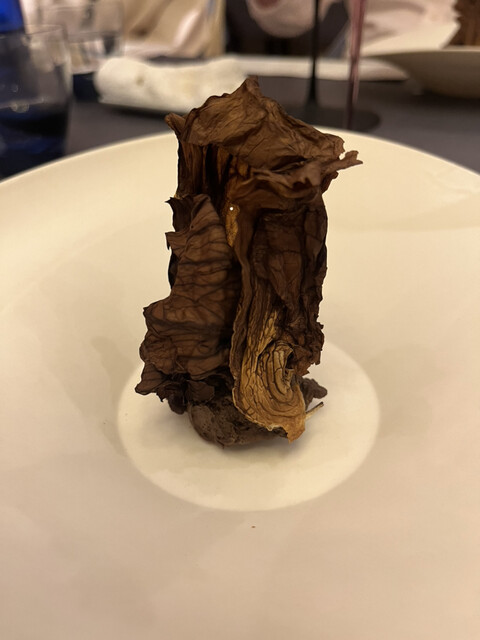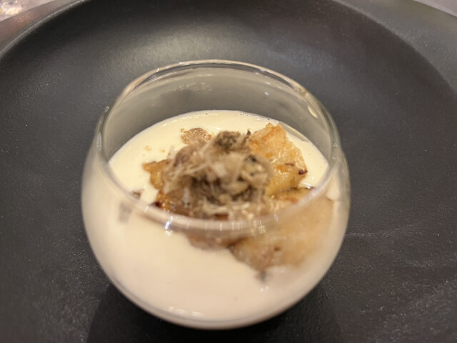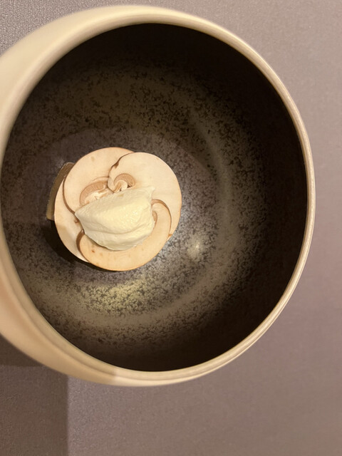 特に素晴らしいかったのは、シェフが千葉の山で集めたきのこをお酒に漬け込んだきのこ酒。