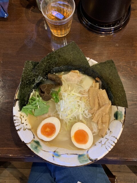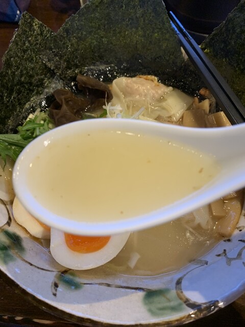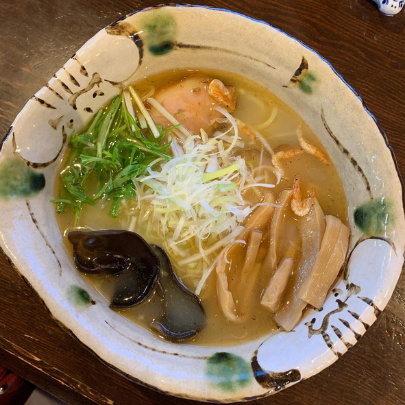 塩 大盛 海老わんたん 焼き海苔と味玉 トッピング