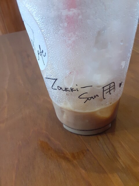 コーヒーを飲み終わる頃にカップにあだ名(本名由来)を書かれてたのに気が付きました。
