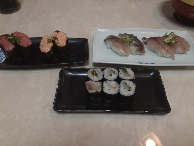 自分もいくつか食べましたが一つ一つを職人さんが手で握ってくださるのでクオリティも高く魚も新鮮で青魚は歯ごたえがありつつ臭みもなくとても美味しかったです。特にシャリはほんのりと暖かく手で握ってるから空気が入りふんわりした食感で口の中でシャリがほろほろとくずれる感じはいまだに機械が超えることが出来ない芸術だと思います。