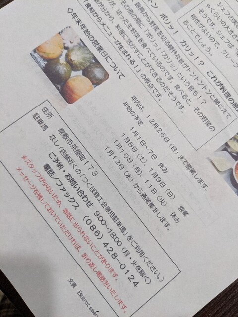 1月の予定と予約、お問い合わせ!