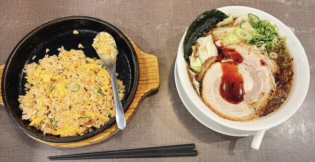 なんかの動画で、珍しいチャーハンの提供をしているのを観た気がしたので、焦がしネギきゃべとんとチャーハンセットを注文☺️