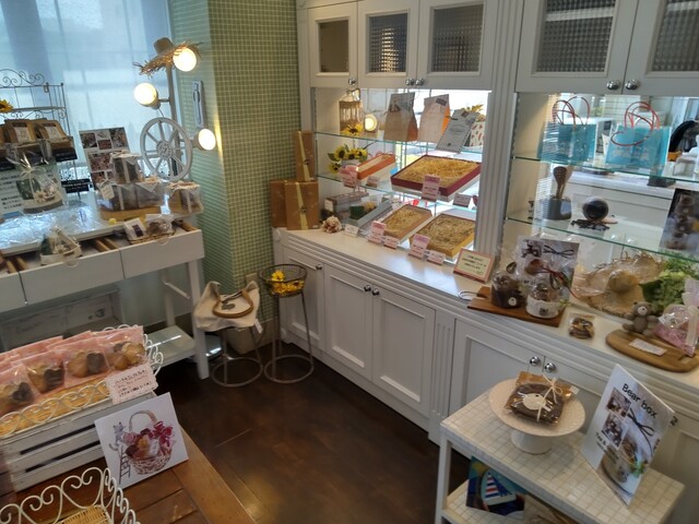 ・外観も店内も女子が大好きな可愛い仕上げになっています。焼き菓子なども多数売られてます。