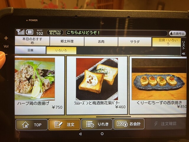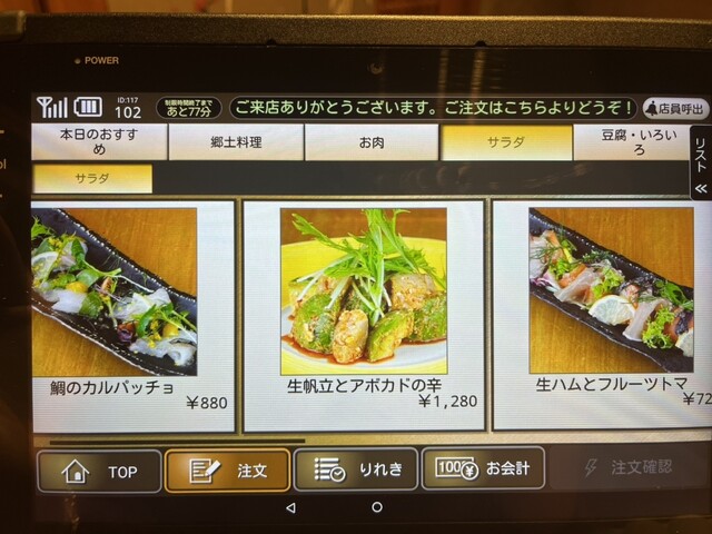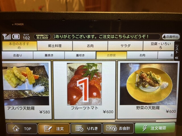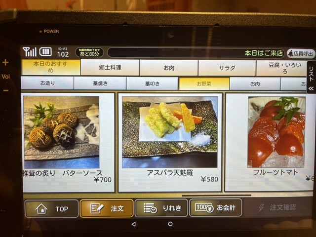 メニューも豊富でタブレット注文だから楽々。