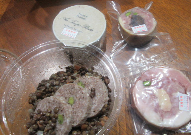 あと名前失念、鶏肉でフォアグラ巻いたのと、鴨肉でトリュフ巻いたの。いずれも500円。たしかバロティーヌだったような。