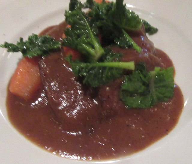 主菜は、メニューにはなかった豚の舌と胃の煮込みと、仔羊腿肉のロースト。豚は、いかにもベルクール伝統の「ホルモン系」の逸品。豚の舌がでかくて繊細。たいそう元気のいい一皿です。