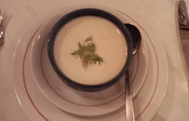 まずはアミューズ、グリーンピースのスープ。空っぽの胃にはやさしい温かさ。