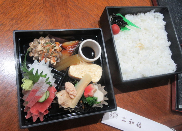 今日は申し訳ないけど最低料金の京弁当一つ。でも、ご飯はほかほか、お刺身は保冷材も敷いてあってきりりと適温、他のおかずはほのかにあたたか。ちょっとした手品のような感じさえしますね。