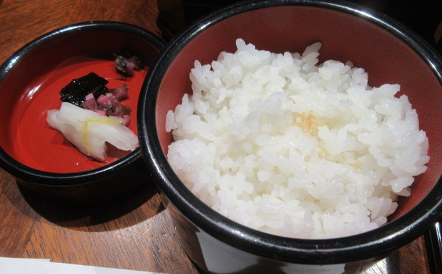 2つは一見似ているようで微妙に違いまして、ご飯の盛り方からお吸い物まで。吸い物は同じ出汁をポットから注ぎ、具も鱧なんですけど、一条の方にはじゅんさいが入っていたり。