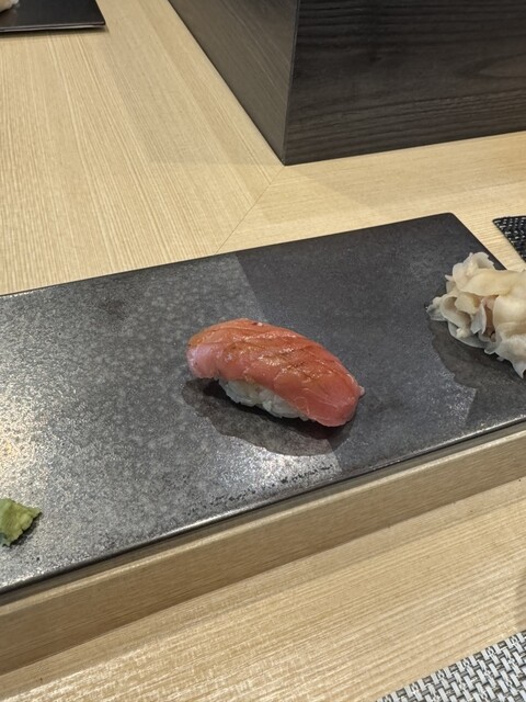 少し小ぶりなネタで、基本的に醤油に漬けて口へ運ぶ事はないので、親しみ易さを感じます。ほろほろと崩れるようなシャリの微妙なかげんとは違って箸で掴んでも楽に口元へ