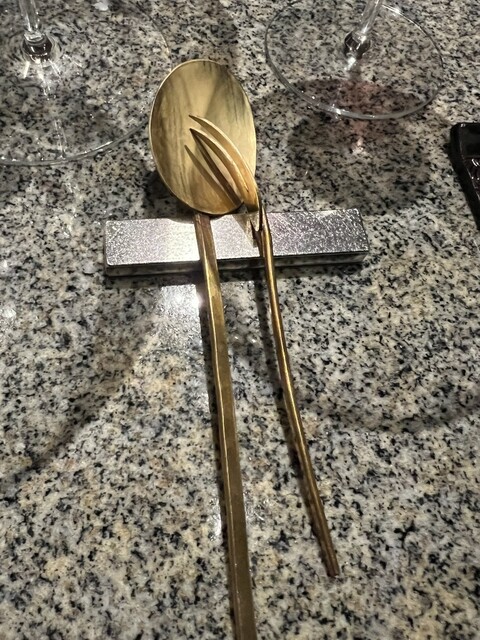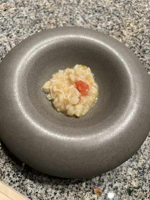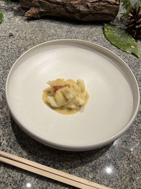 冒頭始末のパンの生地を見せていただき、行ってらっしゃいし、二年蔵囲い昆布と明石の鯛のあらでスープでスタート、色や光、影など味わいやルックスにまでこだわった料理に感動。