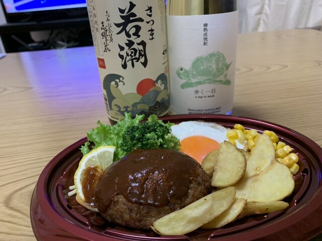 志布志バーガー様!! 今回は、激うま エッグチーズバーガーのポテトセット&カメハイ(歩く一日の炭酸割り)にしました♪ 志布志バーガー様に俳優の山本 裕典(やまもと ゆうすけ)様参上!!