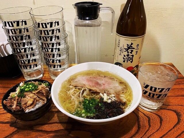 今回は、ラーメン、チャーシュー飯、白若潮(シロワカシオ)の炭酸割にしました⤴⤴⤴