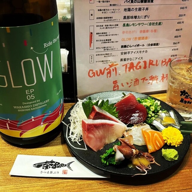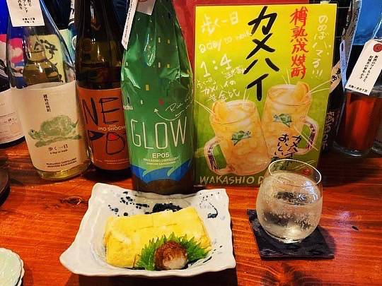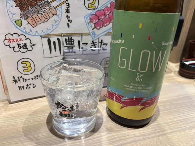 激うま料理が食べられるお店♪ 今回は、地鶏の刺身、唐揚げ、イカの塩辛、カメハイ(歩く一日の炭酸割り)、GLOW(グロー)の炭酸割にしました⤴⤴⤴