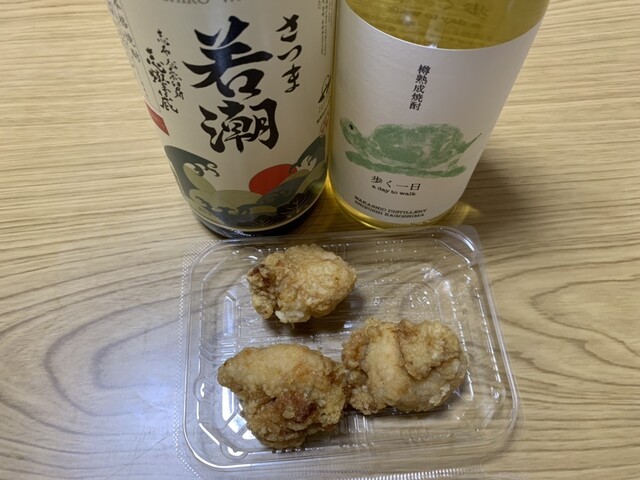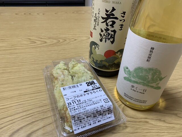 コープのポテサラちくわ&かごんま!うんまか唐揚げ&スパゲティサラダと白若潮(シロワカシオ)&カメハイ(歩く一日の炭酸割り)との相性もバッチリwwww(σ≧▽≦)σ