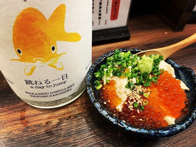 今回は、刺し身盛り、いくらたっぷり白子豆腐、鶏の炭火焼き、デメハイ(跳ねる一日の炭酸割り)、NEW POT2023にしました⤴⤴⤴(跳ねる一日は、ゆずを使用したお酒です♪ newpot2023は今年の新酒で、ロゼワイン酵母を使用しています♪)