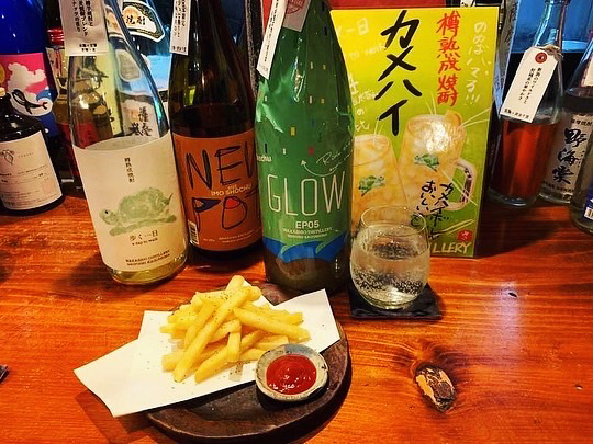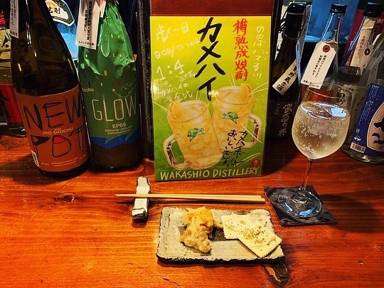今回は、地鶏の刺身、唐揚げ、イカの塩辛、カメハイ(歩く一日の炭酸割り)、GLOW(グロー)の炭酸割にしました⤴⤴⤴