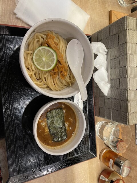 ランチ時は行列 16:30ほぼ満席で食券買って着席 スタンダード並盛 麺は小麦中細麺 スープは濃厚魚介豚骨 魚介系甘味と香りのあるスープでつけ麺人気店系の味 大きめのチャーシューも柔らかい 大盛り以上...