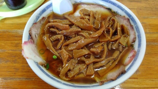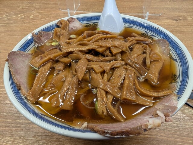 メンマラーメンにコーンとニンニクをトッピング。休前日にお薦めです!