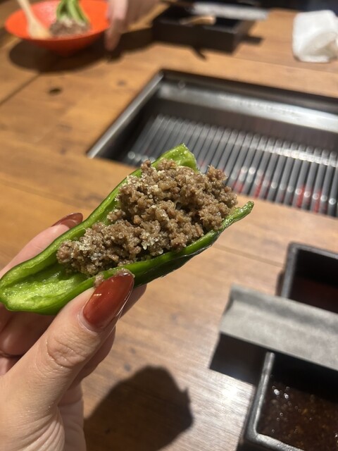 「パリパリピーマン、ミンチのせ」