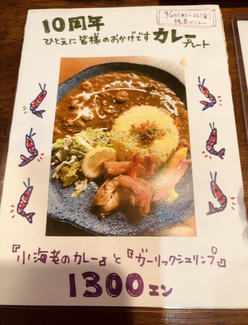 10周年記念プレート【小エビのカレー&ガーリックシュリンプ】