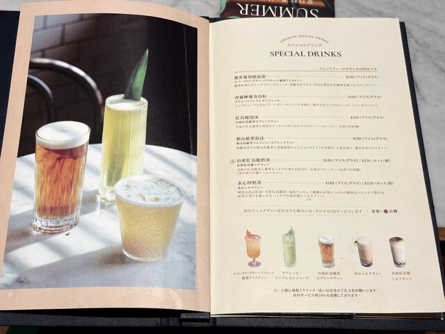 紅玉紅茶チーズケーキ(紅玉紅茶乳酪蛋糕、160台湾ドル)、チアシードリンゴレモンジュース(青蘋檸檬奇亞籽、180香港ドル)