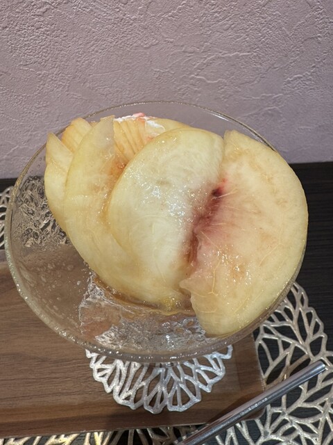 大玉サイズのみずみずしい桃がグラスの上に鎮座!!