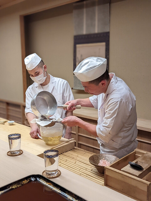 昆布、鰹でカウンター目の前で取ってくれる一番出汁。