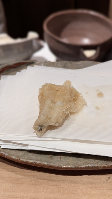 こちらは、素材ごとに打ち粉や衣の付け方を変えて揚げ方を変化をもたらす繊細な仕事が素晴らしい。素材の水分量や旨みに合わせて脱水を考え仕上げる天ぷらは過去TOPクラスの衝撃。
