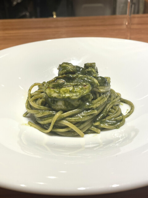 私が今まで食べた中で1番濃厚なジェノベーゼでした。濃厚なのに海老の味も負けないパスタでした。
