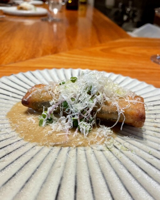 見た目春巻きにパルミジャーノですが秋の味がいっぱいに詰まっていて美味しかったです!日本酒でもいいかも。