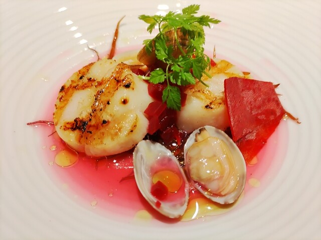 ホタテ貝のグリルにビーツが入っていたのですが、私は分からず(;^_^A