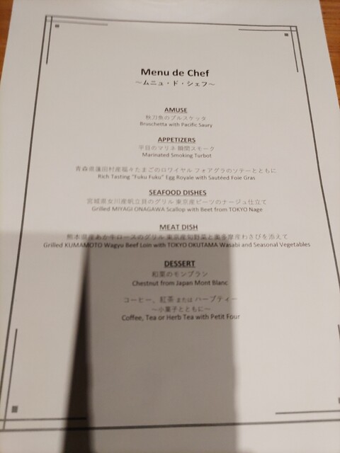 お店の方が一つ一つの料理説明して頂き、食事を楽しむ事が出来ました。