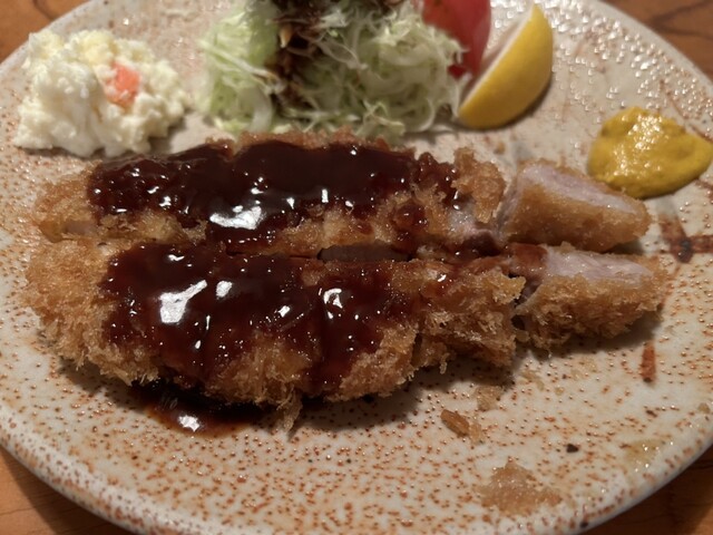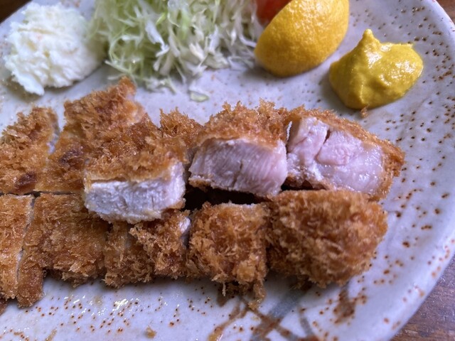 中心が薄っすら赤身のヒレかつ。柔らかく甘味・旨味共濃厚です。