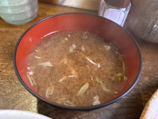 赤出汁のなめこと豆腐の味噌汁も美味しいです。