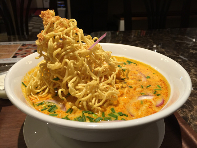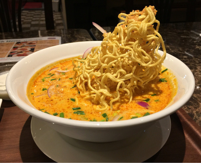 カオソーイを横から撮影。揚げ麵が(^o^)