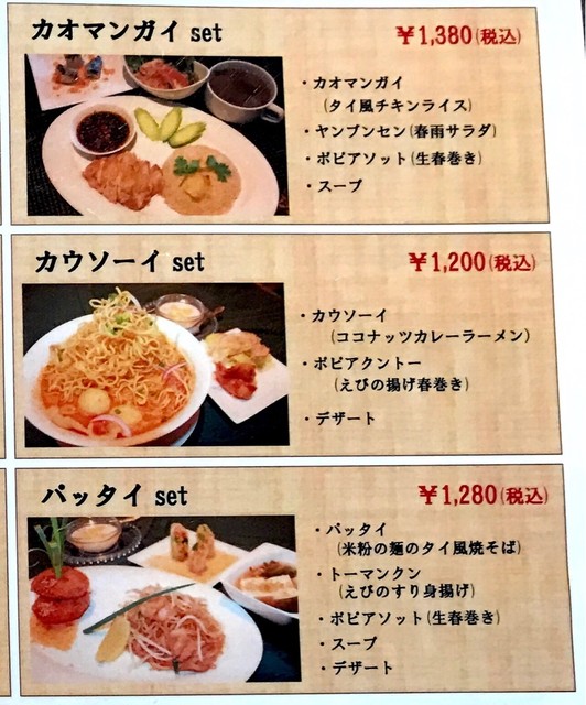 特に、プーニンパッポンカリーとマッサマンカレーとカオソーイが最高です。