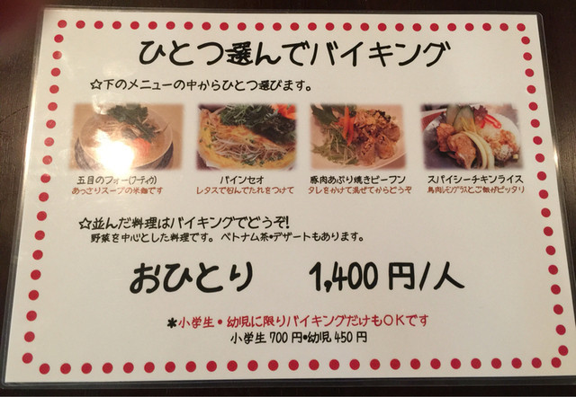 土日のランチ限定のビュッフェ 一人税込1400円。