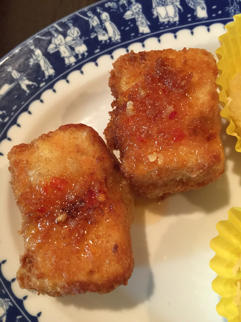 鶏肉を揚げて甘辛ダレをつけたものも、