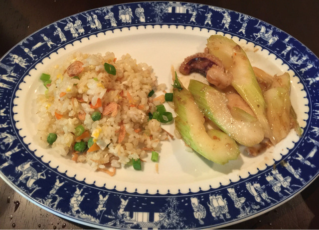 チャーハンも、セロリとイカの炒め物も、