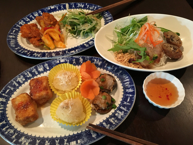 バインセオ(ベトナム風お好み焼) と 豚肉あぶり焼きビーフン にしました。