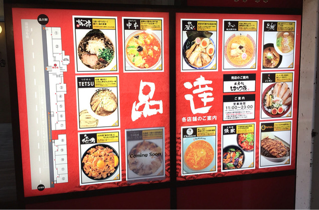 駅の高架下にラーメン店が並んでいます。「品達」というテーマパークだそうです。