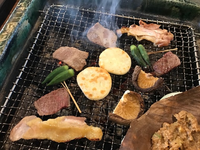 地元季節野菜、飛騨牛、寒天豚、地鶏の味噌漬、