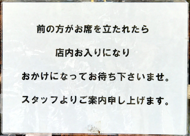 書いてある通り、前の客が席を立ったら、中に入り待ち席に座ります。