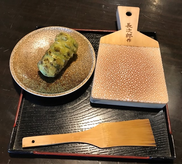 わさびは自分で擦るのですが、この擦り立てわさびがツンツンして、とても美味しいです。